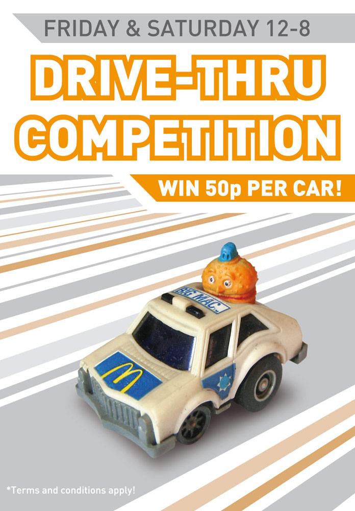 Produced for McDonald's staff, advertising their drive-thru competition.