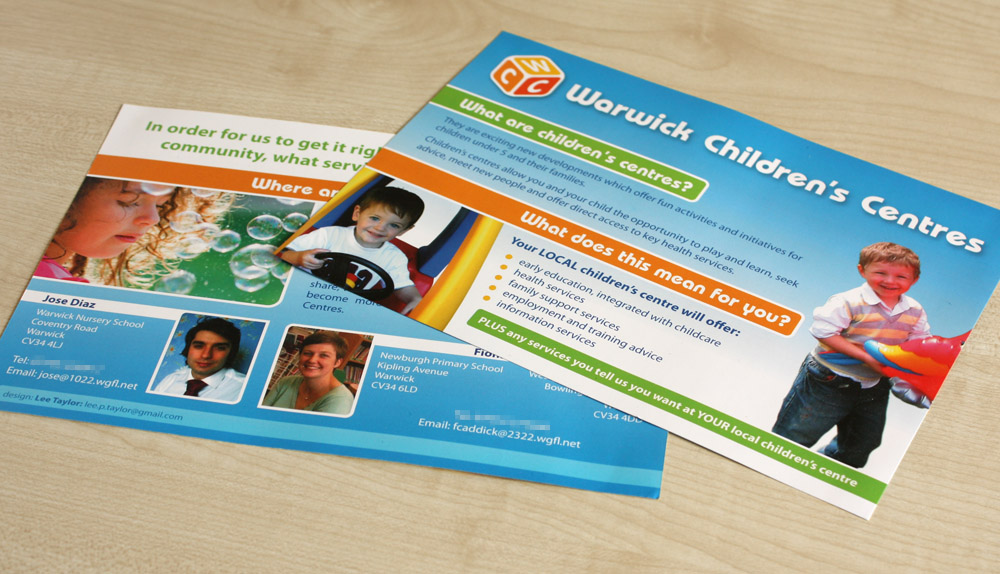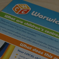Leaflets produced to inform parents of the new children's centres opened by Warwickshire County Council.