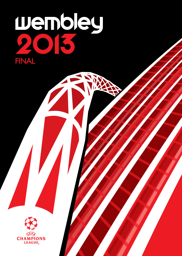 Football event identity design for the Champions League Final 2013 held at Wembley. Previous event design was researched along with location branding such as the 2012 London Olympics. I focused on London's traditional imagery and associated typefaces along with Wembley's unique design.